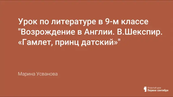 Предложенная вашему вниманию методическая разработка является уроком изучения нового материала, для учащихся 9-го класса по теме "Возрождение в Англии. В.Шекспир. "Гамлет, принц датский". Ни одно произведение великого англичанина не пользовалось такой популярностью и не оказало такого громадного влияния на европейскую