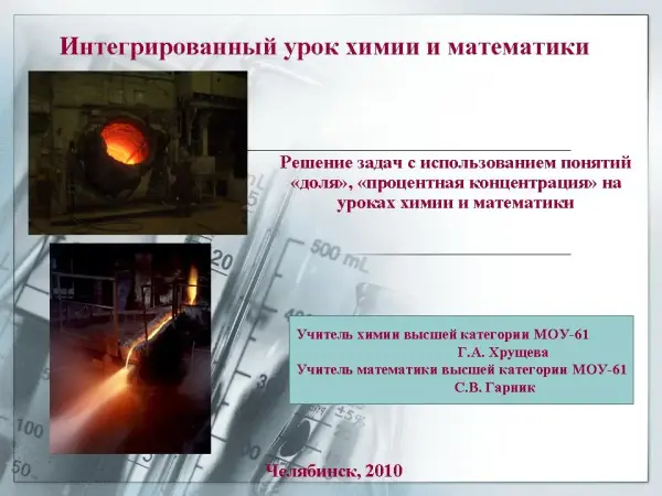 В текстовых задачах особое место занимают посвященные смесям, растворам и сплавам, т. е. на процентное содержание или концентрацию. Такие задачи можно решать составлением уравнений или их систем. Урок учит решать такие задачи, используя знания не только математики, но и химии.