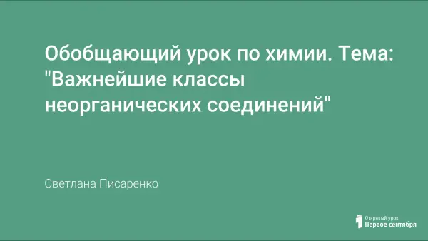 Урок обобщает и контролирует знания учащихся по теме "Важнейшие классы неорганических соединений". На уроке учащиеся составляют уравнения реакции неорганическими веществами, решают задачи по химическим формулам и уравнениям реакций.