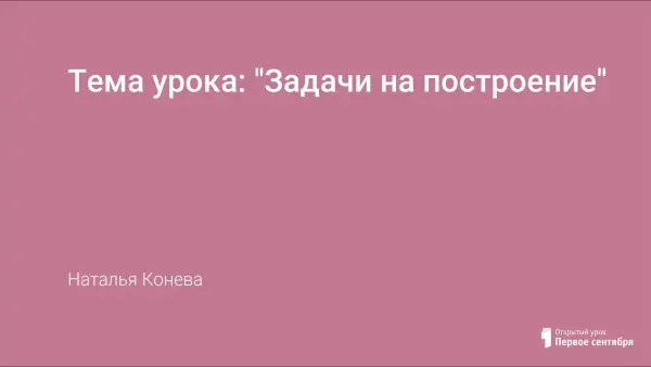 На уроке учащиеся составляют схемы, по которой решаются задачи на построение циркулем и линейкой. Проблема урока — каким способом с помощью циркуля и линейки решаются задачи на построение? В ходе решения задач на построение треугольника по трем элементам учащиеся приобретают начальный опыт в решении задач на построение. Работа осуществляется в два этапа: выполняли построение; отвечали на вопрос "Всегда ли задачи имеют решение". Данные вопросы обсуждаются по готовым чертежам, демонстрирующим построение треугольников.