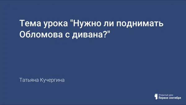 Данная статья представляет собой план проведения урока литературы по теме: "Нужно ли поднимать Обломова с дивана?"