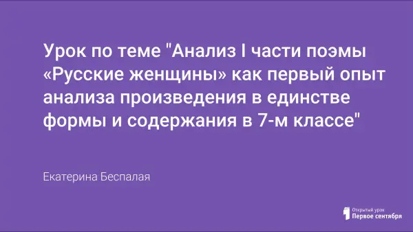 Урок литературы в 7-м классе по теме “ Анализ I части поэмы Н.А.Некрасова «Русские женщины» как первый опыт анализа произведения в единстве формы и содержания “.