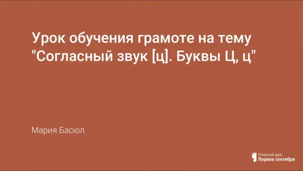 Вашему вниманию представляется разработка урока обучения грамоте по теме «Согласный звук [ц]. Буквы Ц, ц».