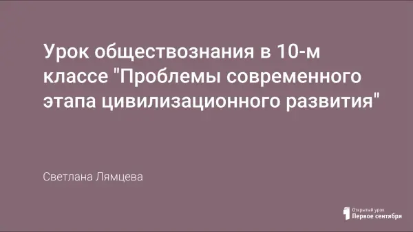 На уроке обществознания создаются условия для развития ключевых компетентностей при изучении проблем современного развития человечества через технологию «Дебатов». Раскрывается сущность глобальных проблем современности и указываются возможные пути их решения на примере проблемы сохранения здоровья и экологической проблемы.