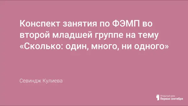 Цели занятия: познакомить с понятием один – много – ни одного. Учить детей осваивать элементарные ролевые и сюжетные игры; развивать фантазию детей; упражнять в составлении группы предметов и умении выделять из группы предметов один; воспитывать отзывчивость, желание помогать другим.