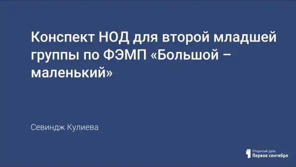Цели занятия: закрепить умения устанавливать отношения между понятиями «один», «много», «ни одного»; обращать внимание детей на различие предметов по величине, формировать понимание слов – большой и маленький, побуждать детей к повторению слов, к показу больших и маленьких предметов.
