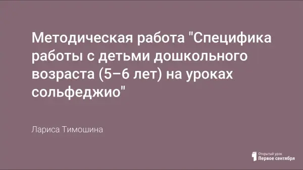 В методической работе автор рассказала о важном элементе современной музыкальной педагогики: работе с учащимися дошкольного возраста. Эта проблема актуальна была всегда. Сохранить интерес у детей к музыкальному искусству, потребность творчества – задача сложная, но необходимая, особенно на уроках сольфеджио в ДШИ.