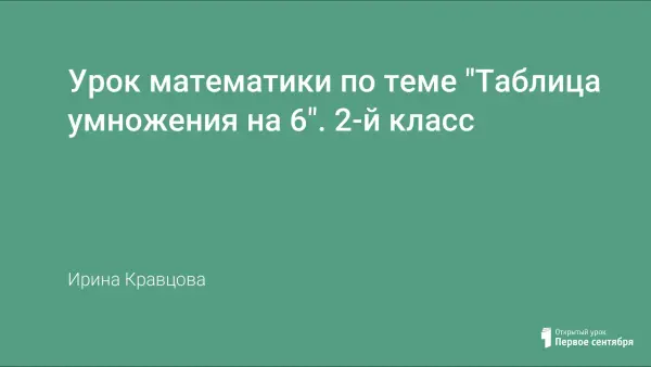 Урок математики по программе «Начальная школа 21 века» под редакцией Н.Ф. Виноградовой во 2-м классе проводится с целью ознакомления обучающихся с таблицей умножения на 6. Использование проблемной ситуации, приемы самоконтроля, самостоятельная работа, работа в парах помогают поддерживать работоспособность и внимание обучающихся на протяжении всего урока, повышать интерес к изучению математики.