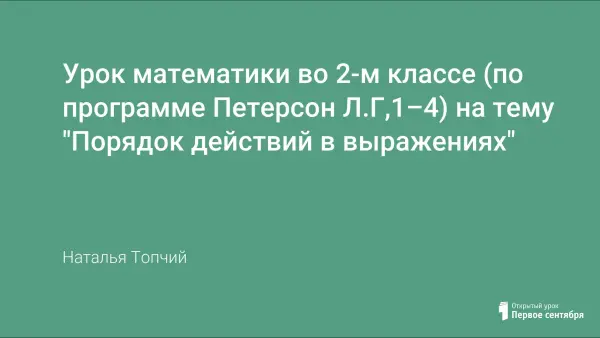 Урок математики для 2-го класса, посвященный порядку действий в выражениях. В ходе урока учащиеся уясняют необходимость введения символа для обозначения порядка действий в выражениях. Узнают о скобках как средстве обозначения порядка действий.