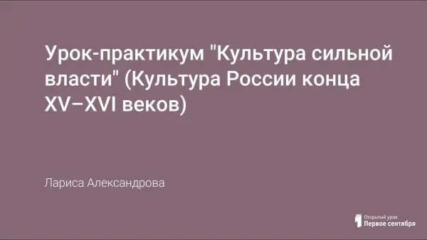 Урок знакомит учеников с достижениями русской культуры в период развития единого русского государства и становления неограниченной самодержавной власти. В коллективной, групповой и индивидуальной работе дети узнают о периоде становления великорусской культуры.