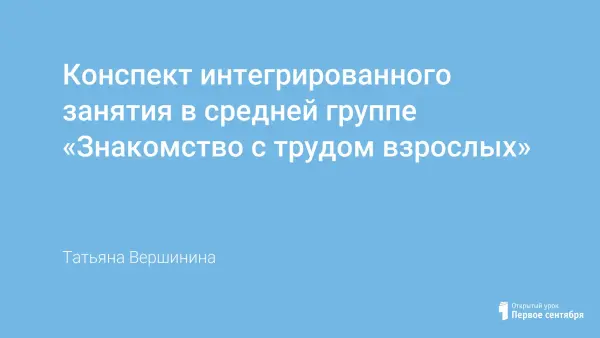 Конспект интегрированного занятия в средней группе «Знакомство с трудом взрослых»