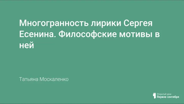 На уроке учащиеся стремятся постичь специфику лаборатории художника слова, т.е. особенности поэтического языка в философских стихах С.Есенина. Определить поэтическую идею его стихотворений. Осмыслить своё личное отношение к прочитанному. Совершенствовать навык анализа лирического произведения в единстве формы и содержания.