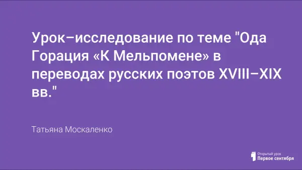 Цель урока – познакомить учащихся с переводом оды Горация «К Мельпомене» М.Ломоносова, А.Востокова, Н.Фоккова; проследить, как развиваются принципы русского классицизма, чем отличаются мировоззрения поэтов; развивать навык сопоставительного анализа лирического произведения.