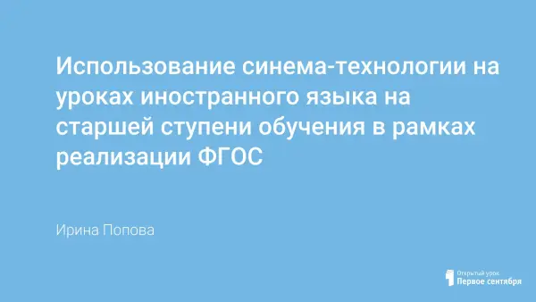 В статье представлены особенности синема-технологии, этапы реализации данной технологии на уроках иностранного языка.
