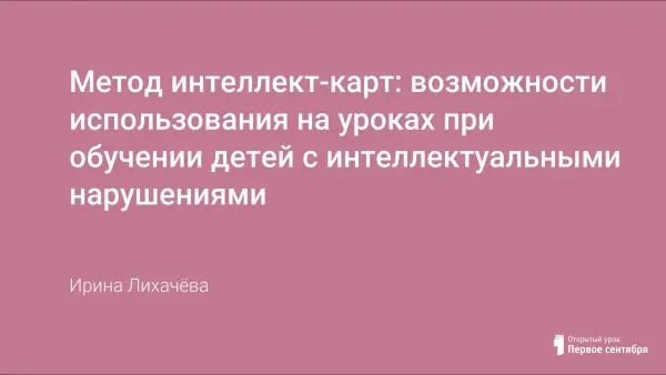Метод интеллект-карт может быть весьма эффективным в решении коррекционно-развивающих задач, т.к. на всех этапах работы предусматривается опора на наглядность и моделирование, что способствует развитию восприятия, памяти, мышления, воображения, творческих способностей, речи у детей с интеллектуальными нарушениями. Применения подобных карт способствует развитию элементов самостоятельности, любознательности, познавательной активности у ребёнка с ограниченными возможностями здоровья, который учится не только усваивать информацию, но и оперативно с ней работать.