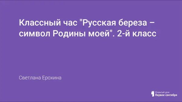 Классный час направлен на воспитание любви к Родине, знакомит с традициями, обычаями, фольклором, национальным костюмом русского народа, рассказывает о березе – символе русского народа. Развивает художественный вкус, эстетическое восприятие детей, артистические способности. Помогает решать вопросы социализации детей младшего школьного возраста.