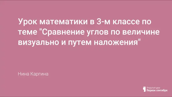 Урок математики в 3-м классе "Сравнение углов по величине визуально и путем наложения"