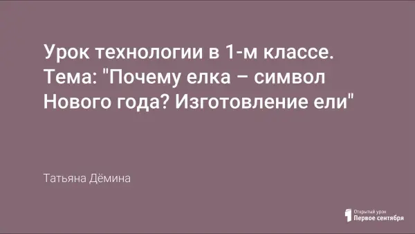 Открытый урок технологии в 1-м классе по образовательной системе «Школа 2100» – урок открытия нового знания. Педагогические технологии, используемые на уроке – игровая деятельность, проблемное обучение, технология развивающего обучения, здоровьесберегающие технологии. На уроке первоклассники учатся не только технологии создания поделки «новогодняя ель», но и расширяют собственные знания о символе Нового года через приём инсерт.