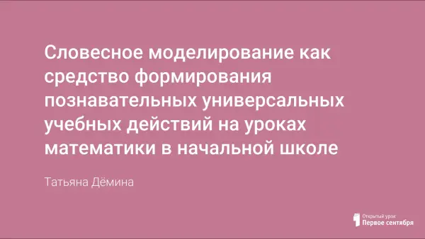 Словесное моделирование задач на уроках математики в начальной школе формирует познавательные универсальные учебные действия.