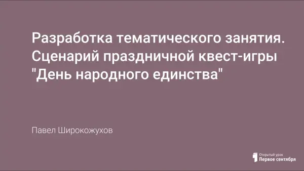 Цель проведения мероприятия: способствовать развитию патриотизма, уважения к окружающим и любви к Родине; воспитать гуманную, духовно-нравственную личность, достойных граждан России, патриотов своего Отечества. Квест рассчитан на обучающихся 11–14 лет. Сценарий можно применять и на более младших обучающихся за счет упрощения заданий.