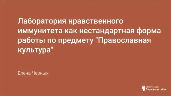 Представлен конспект занятия по православной культуре, проводимого в нестандартной форме - лаборатории нравственного иммунитета.