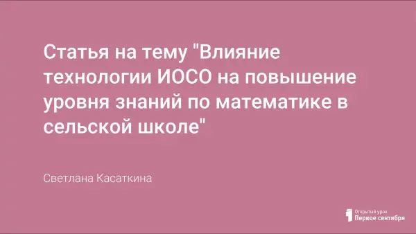 Статья на тему: «Влияние технологии ИОСО на повышение уровня знаний по математике в сельской школе».