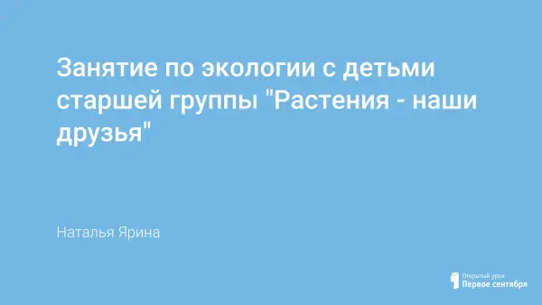 Урок экологии в старшей группе ставит своей целью: ознакомление детей старшего возраста с миром растений; обобщение представления о том, что растения — это деревья, кусты, травы; выделение существенных признаков растений; расширение знаний о функциях частей растений.
