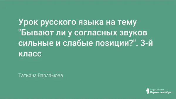 На уроке русского языка в 3-м классе ставится учебная задача: есть ли сильные и слабые позиции у согласных звуков? Цель учителя: создать условия для осознания детьми, что у согласных звуков тоже, как у гласных, есть сильные и слабые позиции.