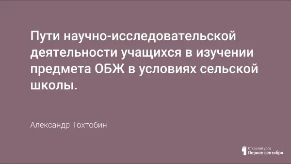 Курс ОБЖ сравнительно молодой в практике обучения, имеющий самостоятельное содержание и свои неотъемлемые компоненты во всех других предметах, опирающийся на систему межпредметных знаний. В научно-исследовательских конференциях секции по ОБЖ и физической культуре отсутствуют. Необходимо обратить внимание на решение этого вопроса.