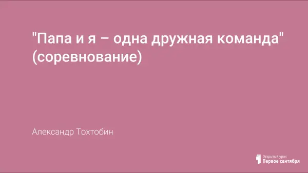 "Папа и я – одна команда" – спортивный праздник для начальных классов. Целью игры является приобщение отцов к школьной жизни детей. Подготовительная работа – фотовыставка отца с сыном. Такие праздники можно проводить в Дни отцов или к 23 февраля. Можно привлечь родительский комитет. Этапы конкурсов могут быть разные.