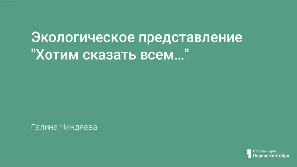 Экологическое представление «Хотим сказать всем» для учащихся 3-х классов призвано помочь детям научиться строить свое поведение в природе на основе знаний о взаимосвязях в ней и оценки возможных последствий своих поступков.