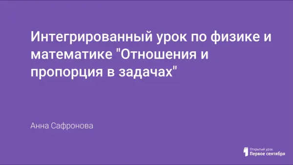 Интегрированный урок по физике и математике для учащихся 6-го класса по теме «Отношения и пропорции в задачах». Интегрирующая цель урока – это привитие интереса к предмету, активизация мыслительной деятельности учащихся, систематизация полученных знаний, использование знаний учащихся в практической деятельности, развитие навыков коллективного обучения.