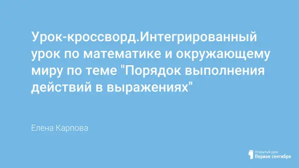Интегрированный урок-кроссворд по математике и окружающему миру проводится после изучения темы «Порядок выполнения действий в выражениях». Различные задания создают условия для активного включения в работу всех учеников. Урок требует умения работать в команде. Полученная на уроке информация о породах собак интересна школьникам. В результате ученики стремятся получить новые знания по данной теме.