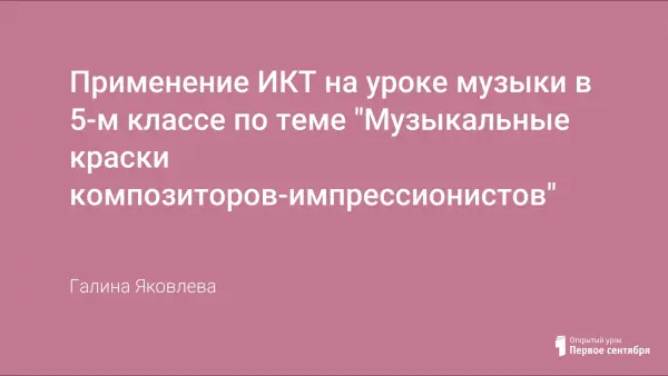Проект представляет собой урок музыки в общеобразовательной школе по программе Т.И. Науменко и В.В. Алеева. Цель урока: познакомить с направлением в искусстве – импрессионизмом, рассмотреть особенности проявления импрессионизма в музыке и живописи. Материалы могут быть использованы также на уроках мировой художественной культуры, факультативах по данным предметам и во внеклассной работе.