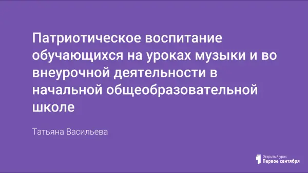 В статье рассматривается проблема патриотического воспитания обучающихся как на уроках музыки, так и во внеурочной деятельности младших школьников, выявляется её актуальность. Автор статьи на примерах из опыта своей работы раскрывает различные формы, приёмы и методы патриотического воспитания в условиях современной школы, ориентируясь на особенности данной начальной школы.