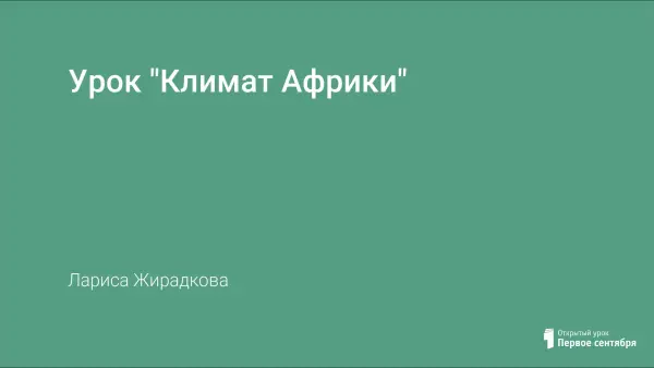 Урок «Климат Африки» впервые знакомит обучающихся с климатом материка, где соединяется воедино влияние многих климатообразующих факторов. На уроке используются элементы технологий проблемного обучения, частично-поисковый, и исследовательский метод.