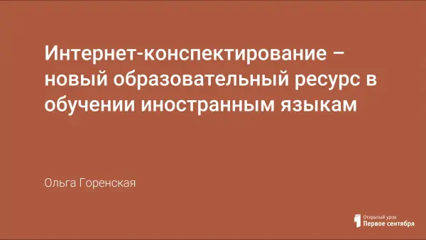 Урок раскрывает такое понятие, как интернет-конспектирование в качестве нового образовательного ресурса в обучении иностранным языкам и показывает его достоинства и преимущества.