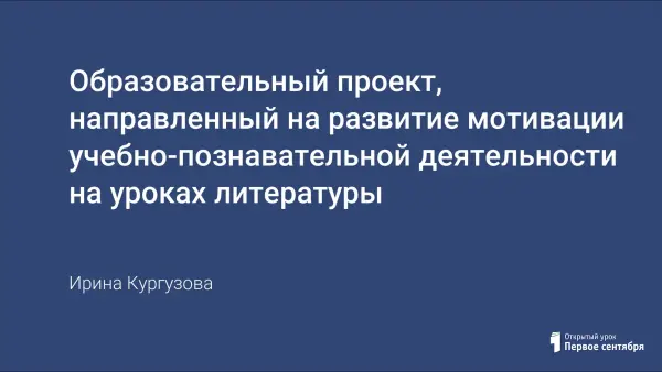 Представлен образовательный проект "Развитие мотивации учебно-познавательной деятельности старшеклассников на уроках литературы". Участие в реализации проекта принимают учащиеся 10–11-х классов. Проект реализуется на уроках литературы и состоит из двух частей (в 10-м классе – 24 часа, в 11-м классе – 25 часов).