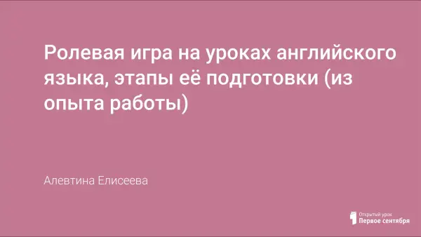 Ролевая игра на уроках английского языка, этапы её подготовки (из опыта работы)