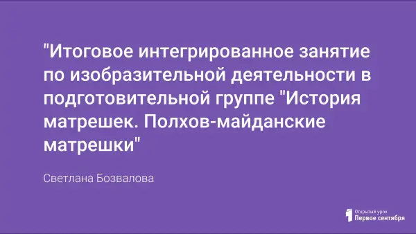 Представлено итоговое интегрированное занятие изобразительной деятельности в подготовительной группе по теме "История матрёшек. Полхов-Майданские матрёшки".
