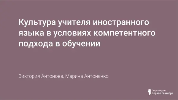Культура учителя иностранного языка в условиях компетентного подхода в обучении