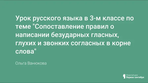 Урок русского языка в 3-м классе по теме «Сопоставление правил о написании безударных гласных, глухих и звонких согласных в корне слова» (программа спец. кор. школы V вида).