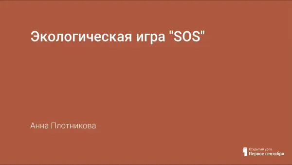 Экологическая игра «SOS» разработана для учащихся 5–6-х классов, воспитывает экологическую культуру учащихся. Через разнообразные конкурсы, оснащённые музыкальным сопровождением, удалось заинтересовать ребят, избежать утомления, напряжённости.