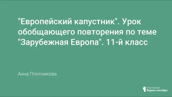 Урок проводится с целью повторения и закрепления знаний о странах Зарубежной Европы. Выбор формы урока не случаен: учащиеся 11-х классов перегружены информацией, дополнительными занятиями, и чтобы привлечь внимание и развить интерес к географии, было дано домашнее задание творческого характера: "Я - страна Зарубежной Европы".
