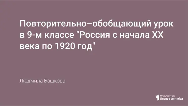 Повторение и закрепление знаний об историческом развитии России с начала XX века по 1920 год. Во многом события этого периода определили всю дальнейшую историю нашего отечества и судьбы людей.