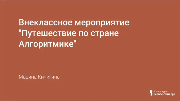 Внеклассное мероприятие "Путешествие по стране Алгоритмика" призвано повысить интерес к информатике, выявить успехи в освоении материала, развить творческие способности детей, дать возможность каждому ребёнку проявить себя. Двигаясь от одного исполнителя к другому, дети выполняют задания, поют песни, рассказывают стихи как в обычном путешествии. Можно с собой в путь пригласить родителей, чтобы они увидели, чего добился их ребёнок в изучении информатики.