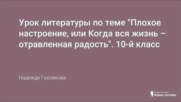Основная идея урока – влияние плохого настроения не только на поведение человека, но и на его творческое начало. На примере творчества М.Ю. Лермонтова и Н.А. Некрасова показывается, как может плохое настроение трансформироваться в талантливые стихи. Чтобы плохое настроение не переросло в депрессию, необходимо знать некоторые приемы поведения.