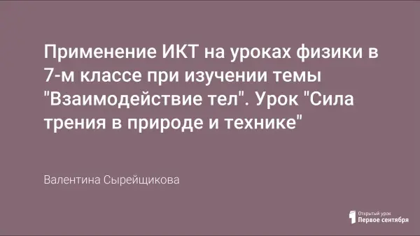 Применение ИКТ на уроках физики в 7-м классе при изучении темы "Взаимодействие тел". Урок "Сила трения в природе и технике"