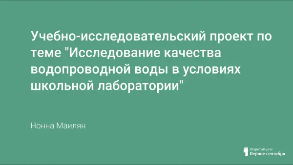 Учебно-исследовательский проект по теме "Исследование качества водопроводной воды в условиях школьной лаборатории"