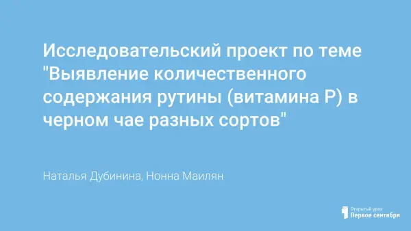 Исследовательский проект по теме "Выявление количественного содержания рутины (витамина Р) в черном чае разных сортов"